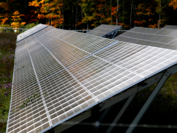 A TransCanada solar array reflects some fall colour at a solar farm on the outskirts of Brockville, Ontario, Oct. 4, 2016. Darcy Cheek/Postmedia Network.