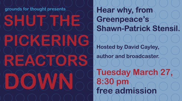(March 27, 2018) Join Shawn-Patrick Stensil of Greenpeace as he focuses on the Pickering problem and why he wants nuclear power out of Ontario’s energy mix.